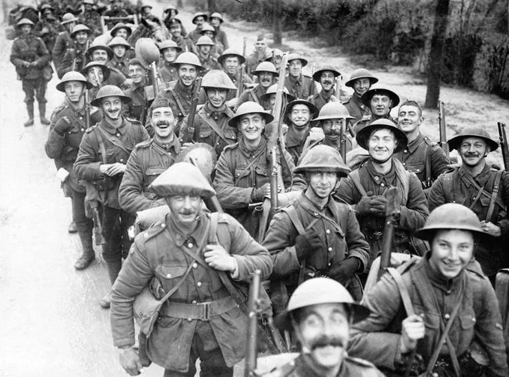 Soldiers marching toward the trenches of World War I. (BBC)