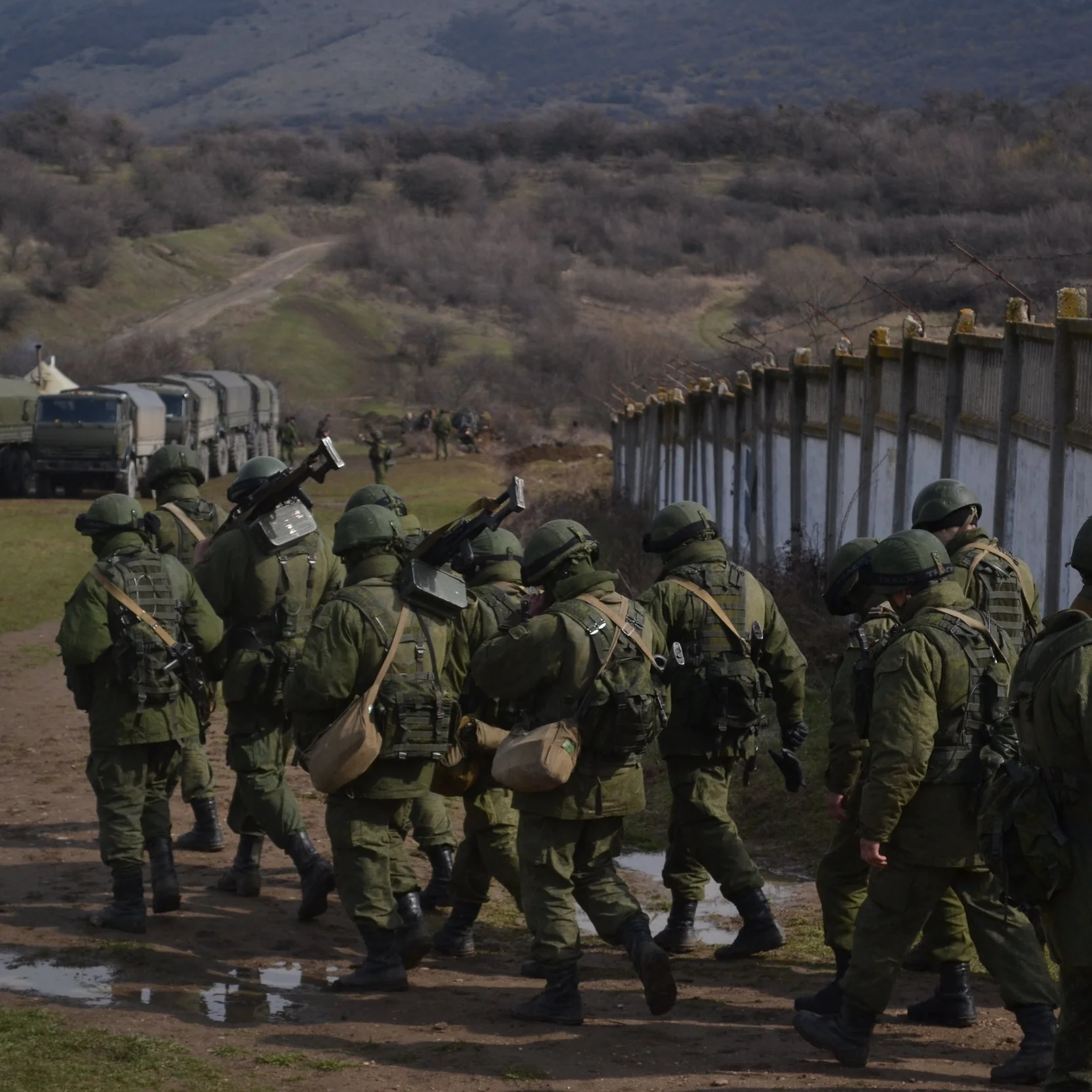 Military base at Perevalne during the 2014 Crimean crisis by Anton Holoborodk. (Wikimedia)